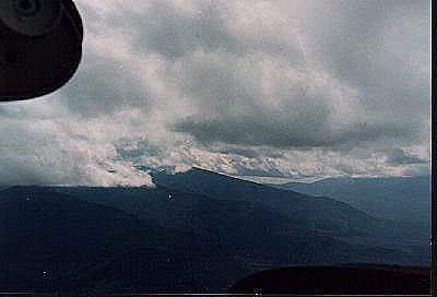 Mount Washington When we cleared customs in Bangor we had lunch and then Claude took the second leg. Later we passed Mount Washington with her peak in the clouds. We were flying up a valley of mountains, most of them with the peaks hidden.