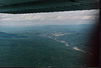 Berlin - Not Germany A little later we approached Berlin, NH. As I looked out the right side and towards the rear I was able to get a good picture of it. Berlin is in a valley that stretches off the the right of the one that we were following.