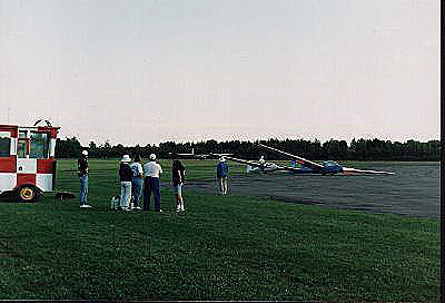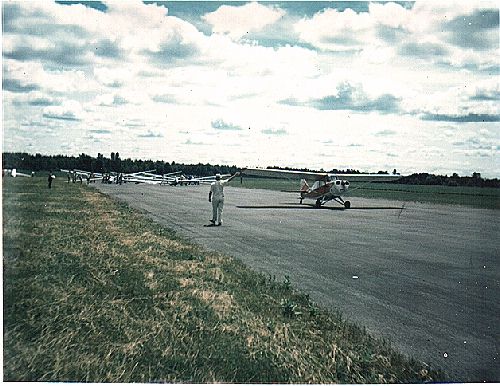 From there Claude flew to Massena, NY and landed to refuel. The gas is so much cheaper in the States than in Canada. I took the next leg, landing in Cornwall, Ont. to clear customs. From there we flew to Pendleton Airport, home of the Gatineau Gliding Club. It was a Friday in the evening and no one was there of course. We walked about a bit and then as I started to take off a car approached, but we were on our way.