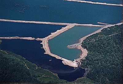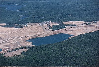 Tin Mine Buildings The tin mine was an open faced one. The buildings to the right of the center are quite large. The area where the surface was removed was very big, and very white. It can be seen from our airport by the time you reach 1000 feet. The water is where water used in the mine operation is placed after use. It is very contaminated.