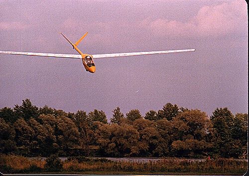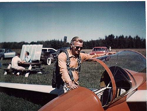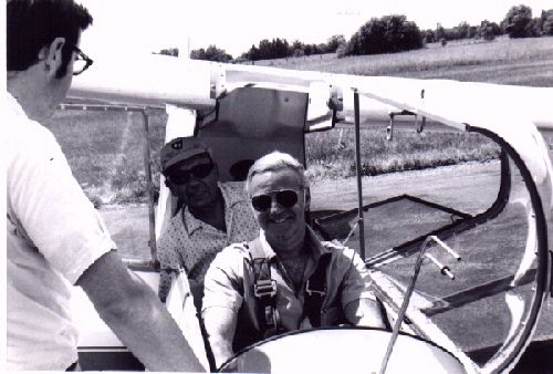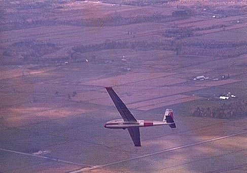 Most first flights last about 20 minutes. I was lucky. I got into a thermal and climbed the glider to 4000 feet and we stayed up for forty-five minutes. My instructor was Stan Bienada, who had moved from Poland to Canada. At one point I got to cloud base and started into the cloud. Stan grabbed the controls, opened the spoilers and got us out of it. Spoilers are flaps in the middle of the wings that will open and kill the lift of the wings causing the aircraft to sink fairly rapidly. Training gliders are not equipped for instrument flying and getting right into a cloud could be a disaster.