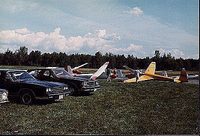 On the purchase date I took it up and got to 3700' and flew for two hours and nine minutes. A series of badges that glider pilots go for start with the Silver "C". The first is a height gain of 1000 meters, the second a flight time of five hours after release from the tow plane and the third a cross country flight of 50 Km and landing that distance from the start point. On the 13th June, 1970 reached 6000', a gain of 4000' for number one, using a 1-26. On 26th August, 1970 I flew 48 miles, landing near the St. Lawrence River in Quebec. On 23rd May, 1973 I tried for the time flight in the Skylark. We always tried to make five and a half hours to ensure that we wouldn't find out on landing that after release we were about five minutes short. I made five hours and twenty-six minutes.